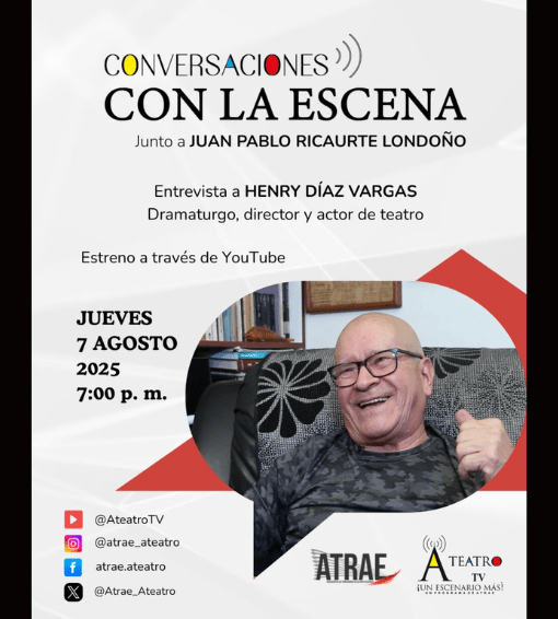 Hoy celebramos el estreno del 2º capítulo de A TEATRO TV, una iniciativa de la Asociación de Trabajadores de las Artes Escénicas ATRAE, con una invitada muy especial: 👤 Marina Lamus Obregón. Historiadora e investigadora teatral colombiana, quien conversará con Juan Pablo Ricaurte Londoño, investigador escénico, gestor cultural y director de ATRAE, sobre la vida,… Lee más: Conversaciones con la Escena Temp 1 Cap 2 Marina Lamus Obregón, conversa con Juan Pablo Ricaurte - Conversaciones con la Escena Temporada 1 Juan Pablo Ricaurte L entrevista al maestro Henry Díaz